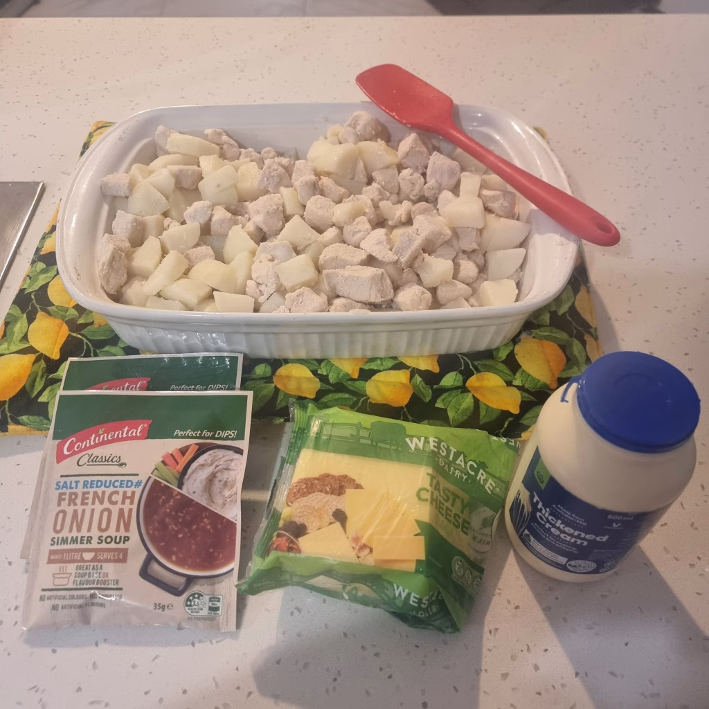 minutesThis recipe brings together tender chicken breast, hearty potatoes, and a creamy, cheesy French onion sauce that’s packed with flavour. It only takes about 30 minutes in the oven once everything’s prepped, and the best part is how incredibly easy it is to throw together.